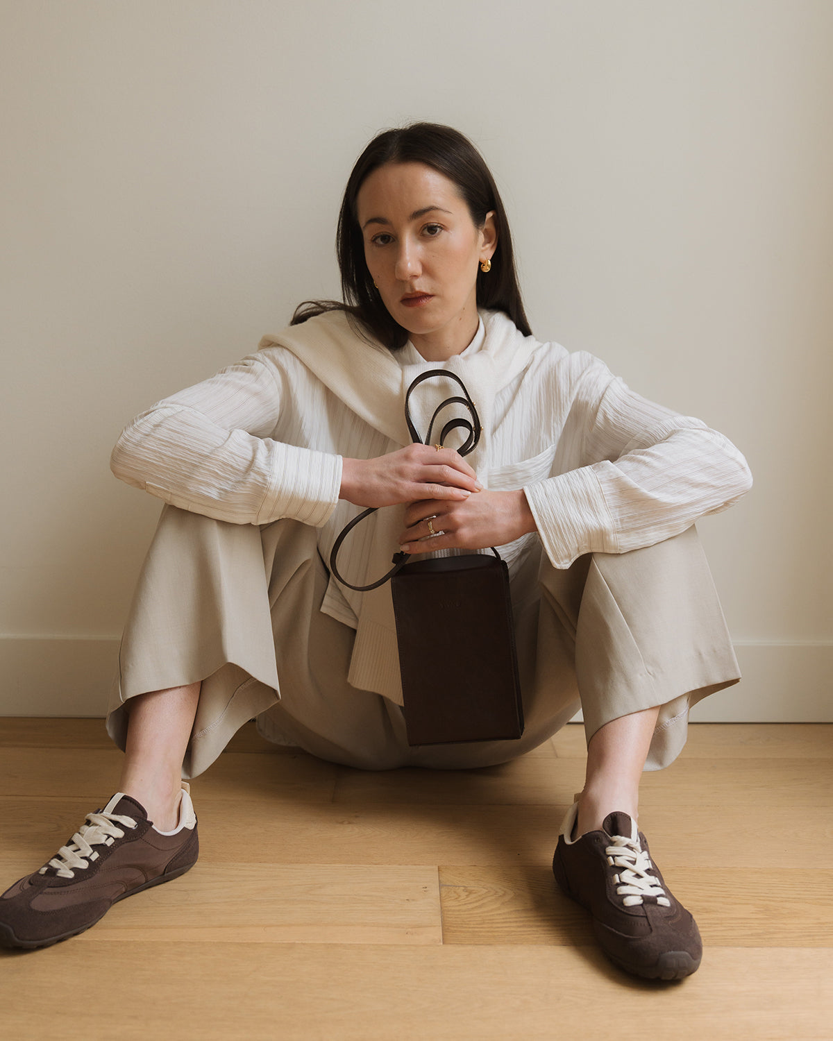 The ELENA Phone Bag in Espresso is a compact crossbody bag designed for moments when you want to carry only the essentials - your phone, keys, and wallet. With its boxy silhouette and clean, structured lines, ELENA feels architectural yet timeless: small in size, but confident in presence.